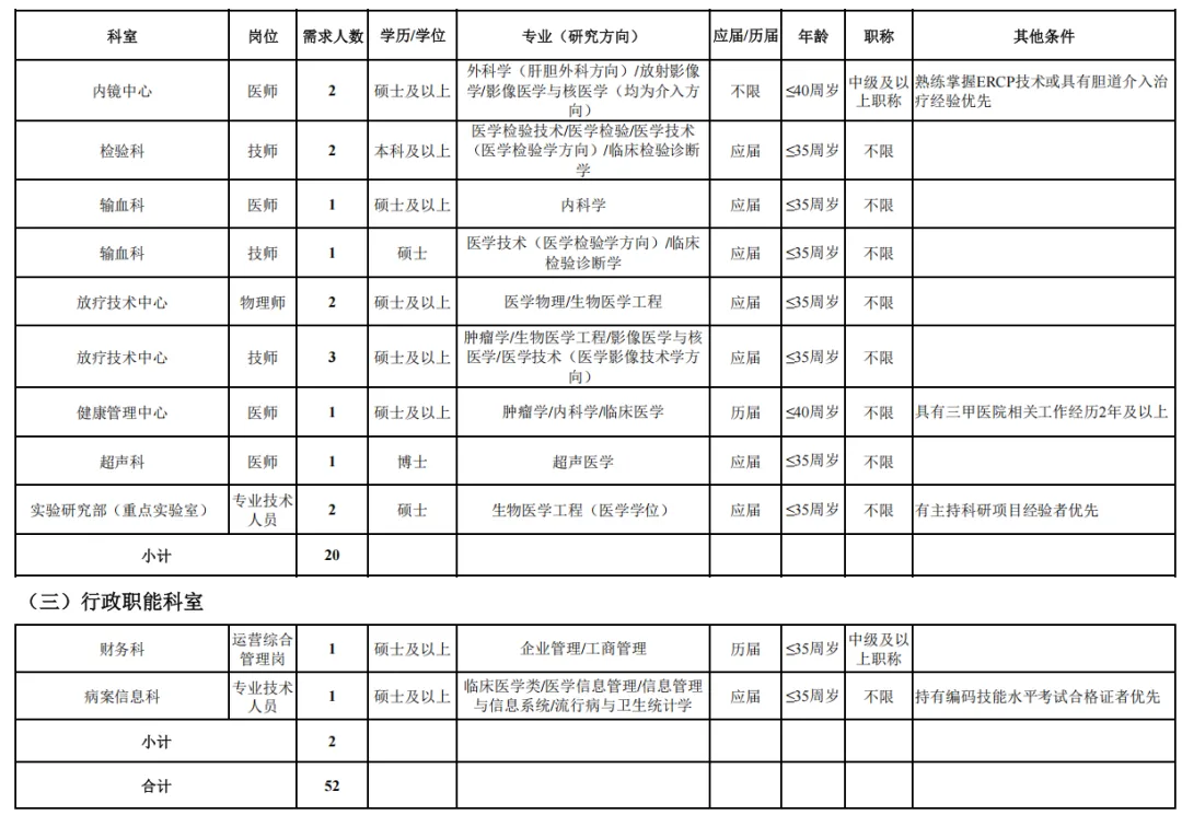 根据我院发展需要,现开展2026年人才招聘工作,计划招聘各类人才52名。具体招聘岗位、条件及报名方式如下: