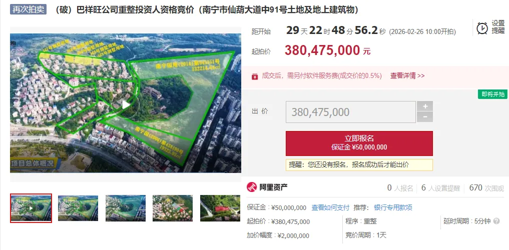 作为市场难得的净地开发标的,本资产包权属清晰、构成明确,核心价值聚焦土地本身,资产包核心为三宗稀缺土地使用权,市场评估总值约4.3亿元,是开发的核心基底:托斯卡那地块A:面积132214.64㎡,市场评估价值约3.46亿元,为主体开发用地,版图开阔,可承载核心产品打造托斯卡那地块B:面积19325.03㎡,市场评估价值约5057万元,可作为配套补充,丰富项目业态5栋未建别墅用地:市场评估价值约3315万元,可灵活规划,提升项目高端属性地上建筑:地上仅存少量管理综合楼、配套用房及附属构筑物,价值占比极低,不影响整体开发规划,开发者可随心布局,最大化挖掘土地价值原“托斯卡那”规划超前奠定山地生态别墅基调,如今更可在此基础上,融合当代高端人居理念,呈现多元可能:延续升华:打造现代岭南山水合院、叠墅群落,焕新高端低密居住形态融合创新:引入艺术文创、自然度假等复合功能,塑造“邕江畔山水生活范本”分期生长:依地形与景观资源有序开发,层层释放土地价值竞价标的::(破)巴祥旺公司重整投资人资格竞价(南宁市仙葫大道中91号土地及地上建筑物)有些资产生而不凡,却需要对的时机与对的执笔人。这份邕江畔的山地资产,经历了时间的沉淀,正迎来价值重估的最佳契机。