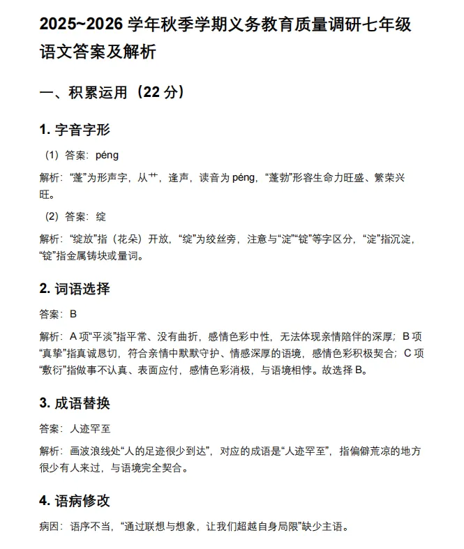 七年级语文答案解析