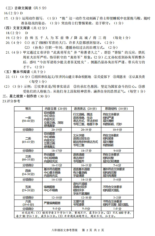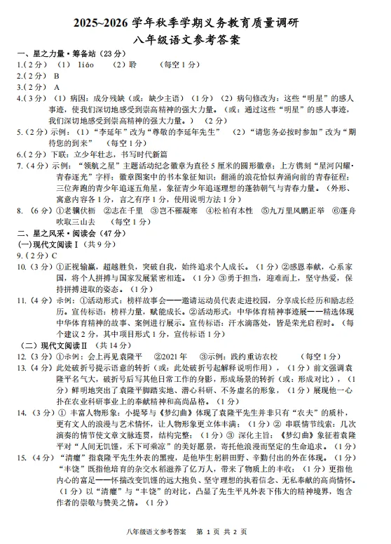 八年级语文答案解析