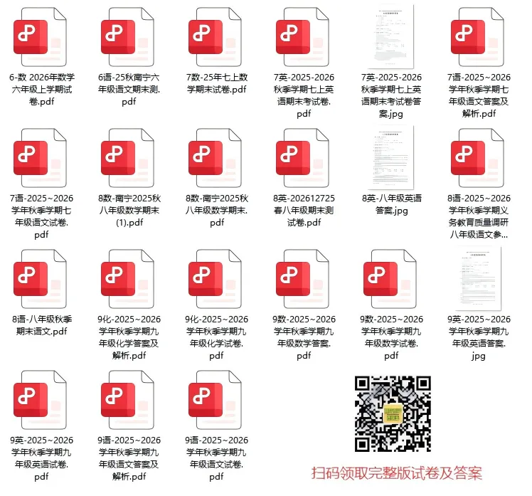 其他科目的试卷及答案解析也在持续收集中,将陆续更新。欢迎有需要的家长添加南宁升学百晓生微信,免费领取完整版资料,助力孩子查漏补缺,高效开启寒假复习!