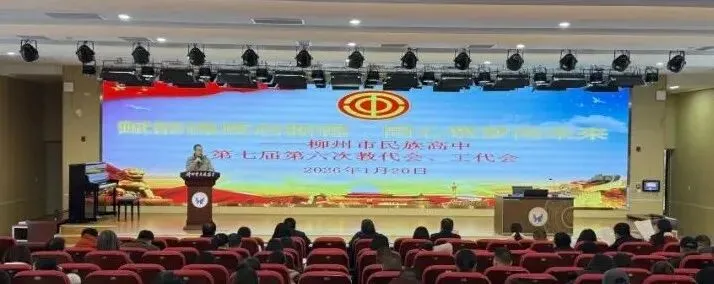 为凝聚共识、激发活力,共谋学校高质量发展新篇章,2026年1月20日至23日,柳州市民族高中第七届第六次教代会、工代会在学校报告厅隆重召开。本次大会围绕学校管理机制优化与教师激励体系完善等关键议题展开审议。