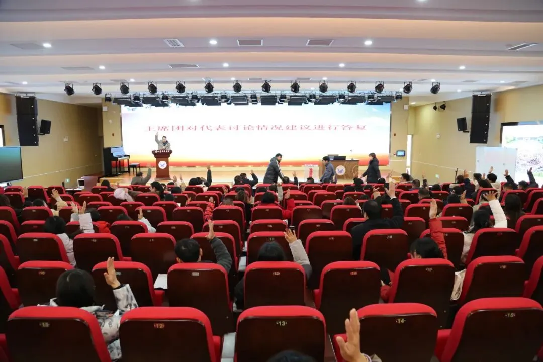 在分组讨论环节中,与会代表们分为五个代表团,由各代表团团长组织讨论。代表们立足岗位实际,畅所欲言,就方案的具体内容、实施细节以及学校发展各方面工作提出了许多建设性意见和建议。讨论现场气氛民主、活跃,充分展现了代表们参与学校治理的主人翁精神。
