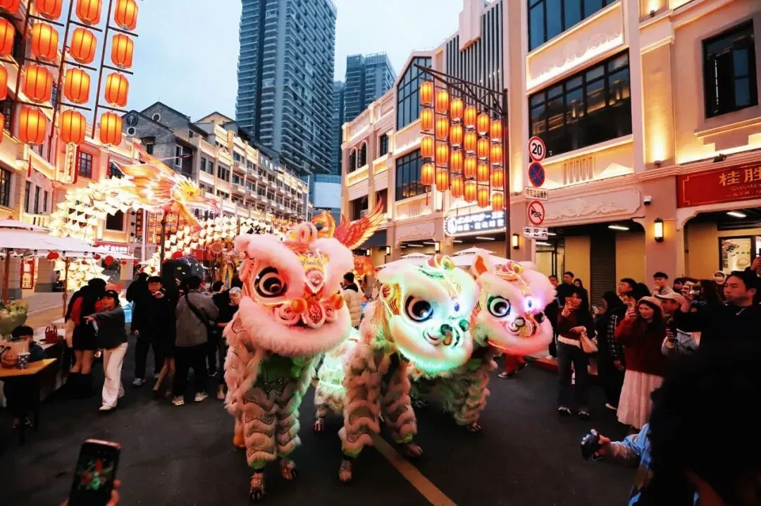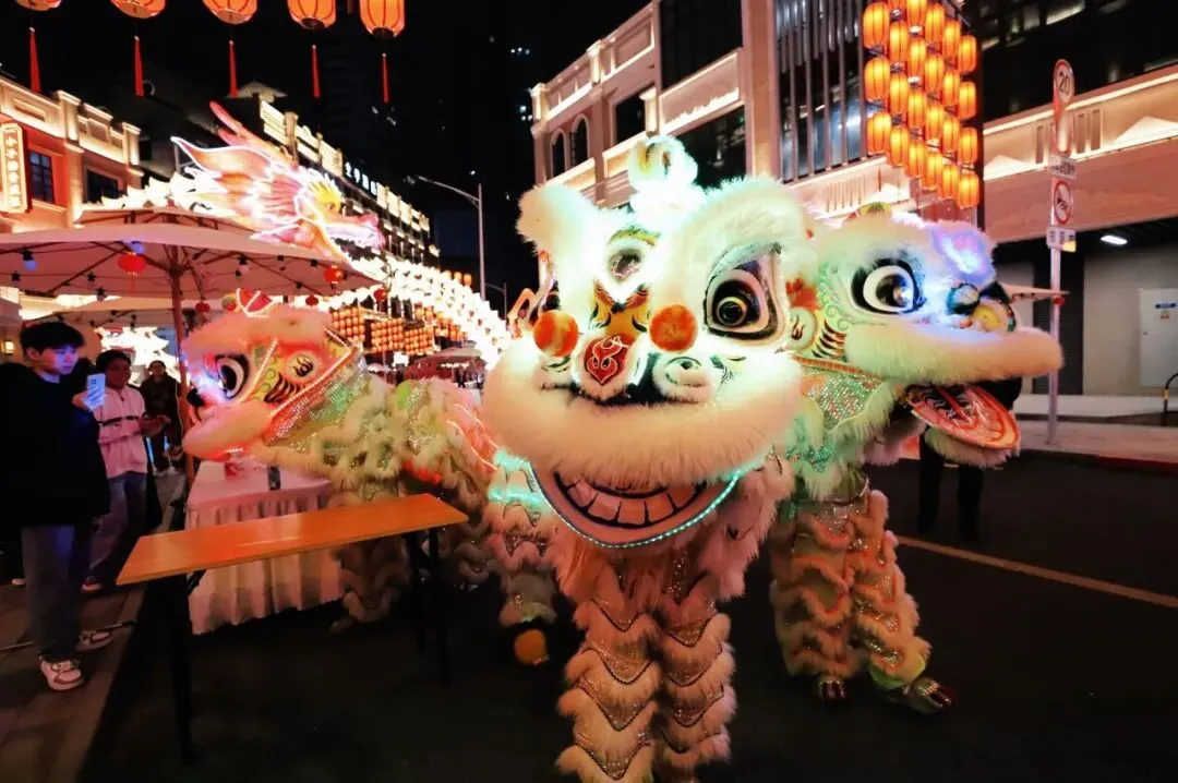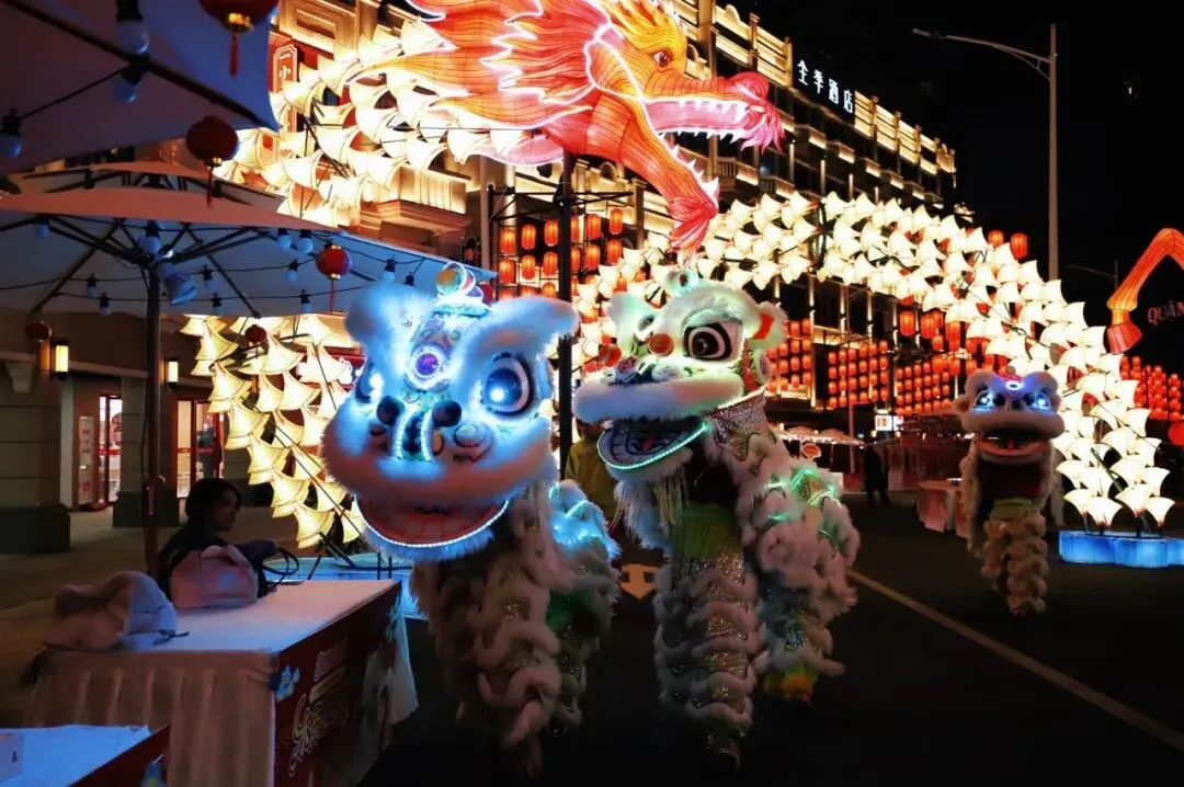 电光舞狮更是将氛围推向高潮,闪烁着霓虹灯光的狮子腾跃翻滚,搭配激昂的鼓点,寓意着吉祥如意、兴旺发达。