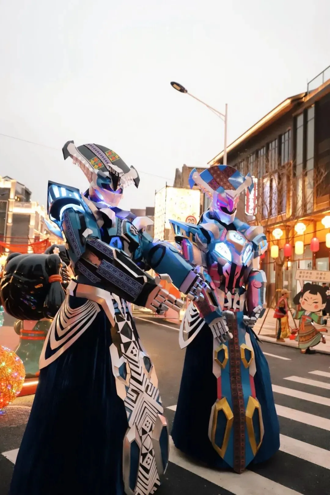 壮锦机甲巡游则带来强烈的视觉冲击,传统壮锦元素与未来机甲造型完美融合,刚柔并济。