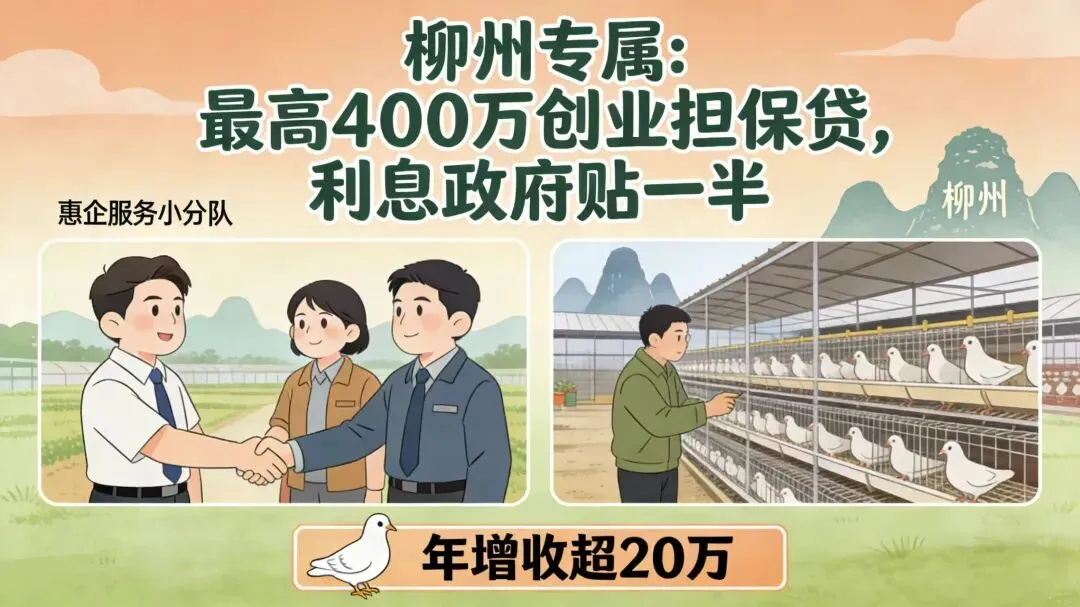 比如柳州鹿寨县搞肉鸽养殖的陆老板,去年申请30万创业担保贷扩规模,种鸽从1000对增至3000对,年增收超20万,这就是本地政策的实在好处!