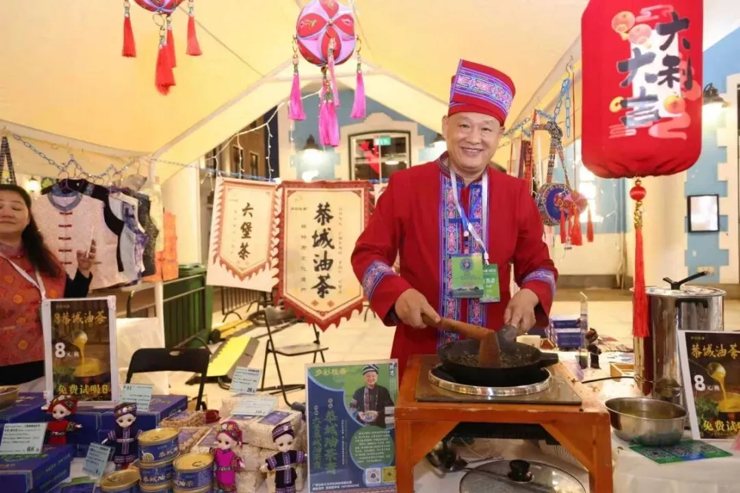 恭城油茶制作工艺代表性传承人陈恩,将用老火水煮千碗恭城油茶。油茶的醇厚鲜香搭配酥脆米花,是刻在广西人骨子里的地道年味,一碗热油茶,暖身又暖心,让大家在舌尖上感受浓浓的新春年味。