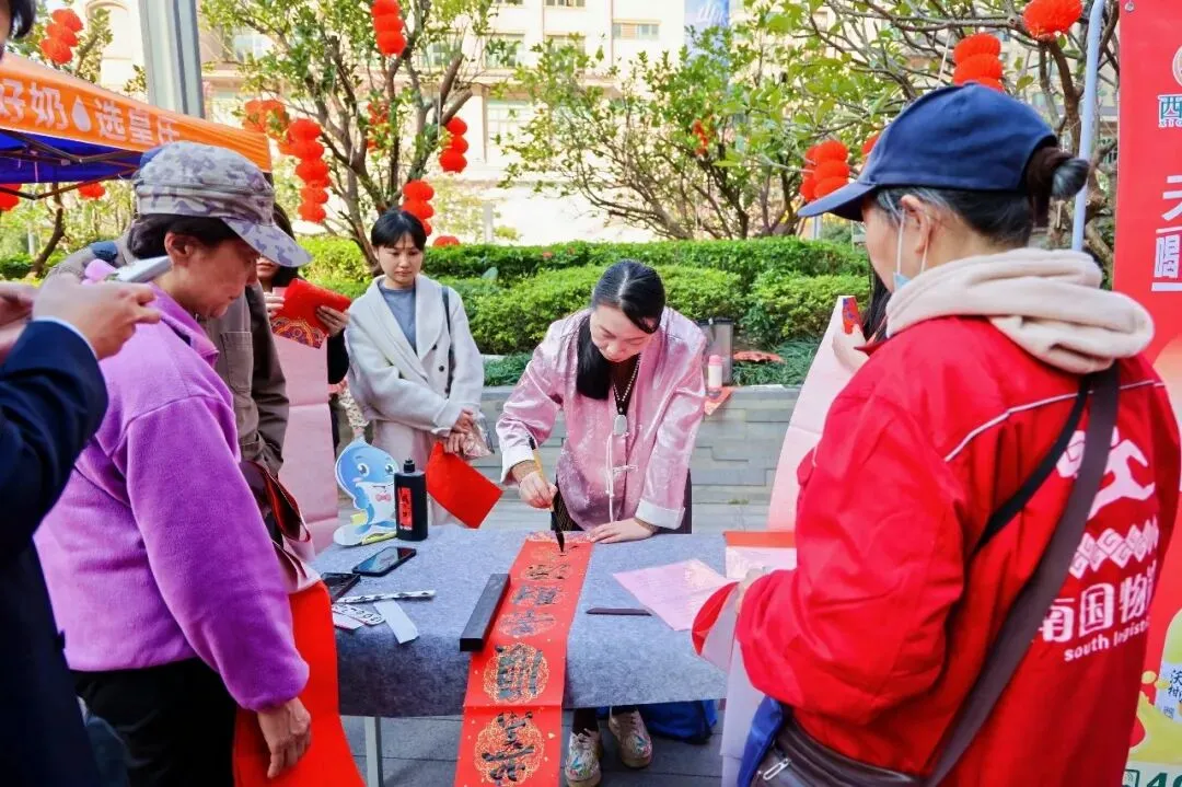 自治区医保局现场提供医保政策咨询、业务办理指导等便民服务,参与 “医保知识大闯关”,答对问题就能领取精美奖品,在逛集的同时解决医保疑问,收获福利与知识;书法家现场挥毫泼墨,免费为市民书写春联与“福”字,把新春的美好祝福亲手送到市民手中,为新春添上一抹喜庆的中国红;南宁市慈善总会也在现场开展公益宣传,让市民逛集不仅能吃喝玩乐薅福利,更能感受多元体验与暖心公益。