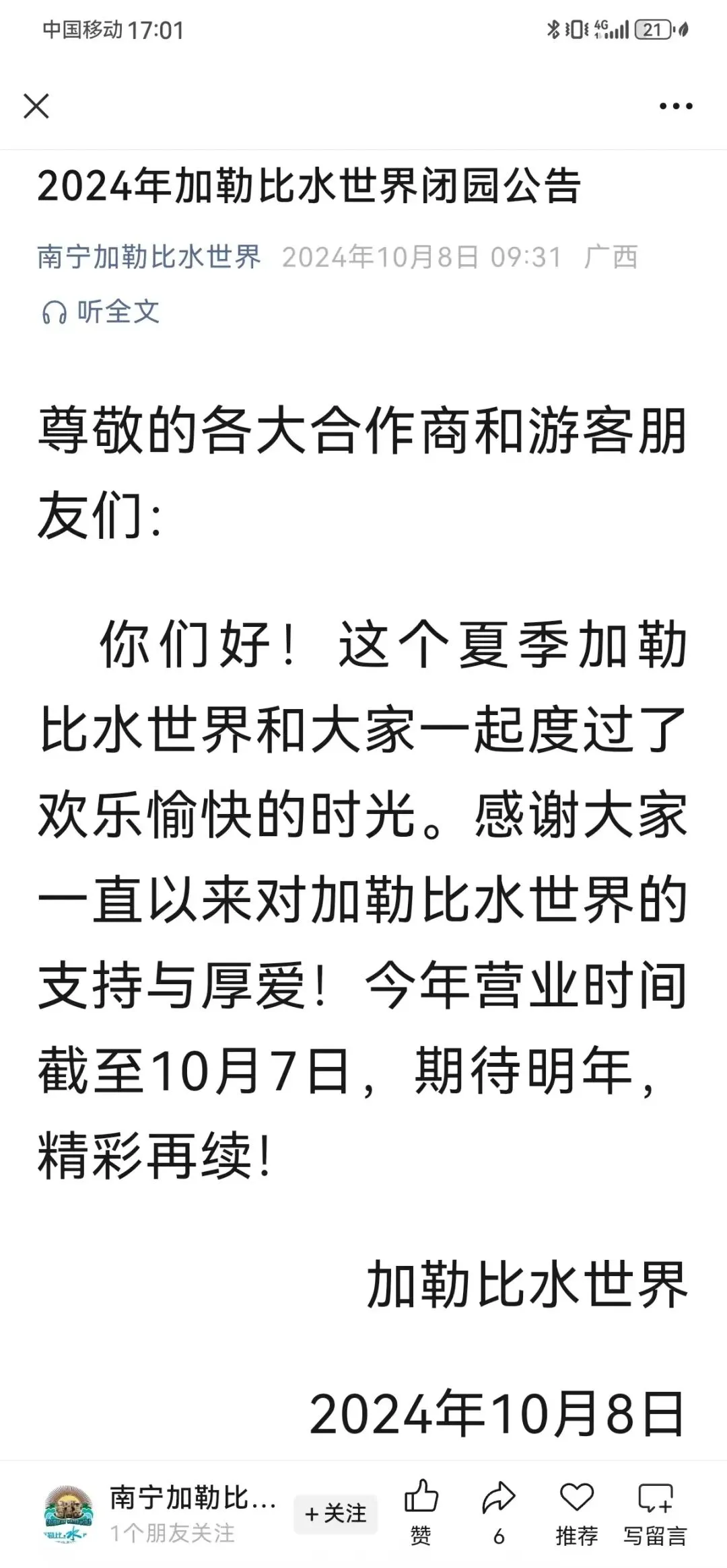 2025年的夏天,经营了15年的南宁加勒比水世界(下简称“加勒比水世界”)停业的消息,让不少南宁人惋惜。