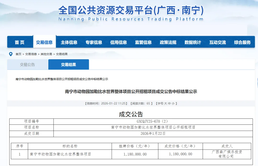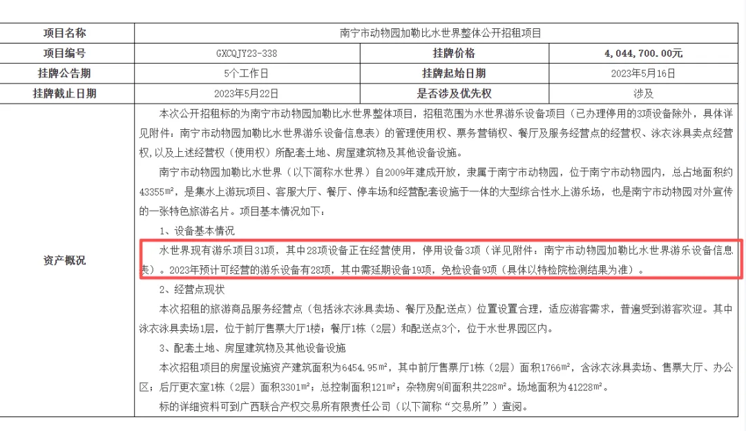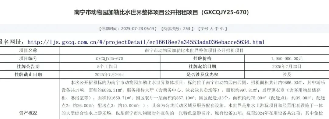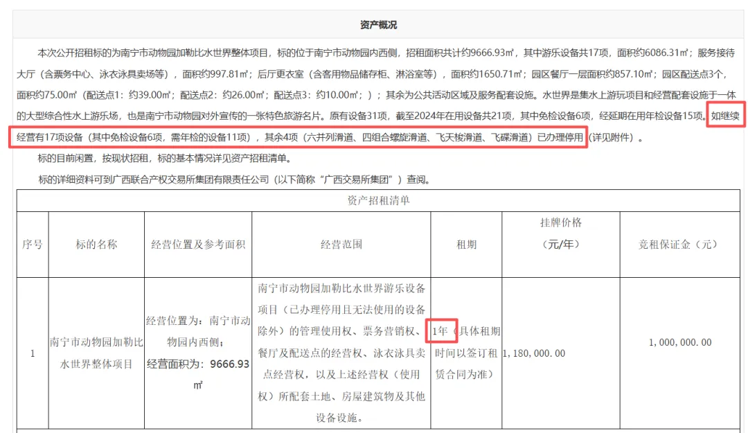 2025年夏天,媒体报道该项目已停业,南宁动物园则称该项目仍在招标阶段。