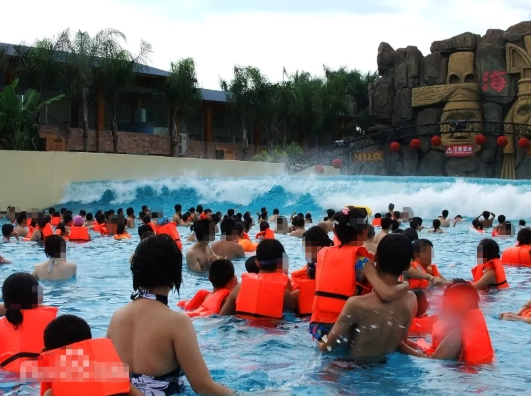 乐园里,换衣区、淋浴区、桑拿区都得排队,更别说大喇叭、彩虹滑道这些热门项目,每玩一次都得等上十几分钟,甚至半小时。