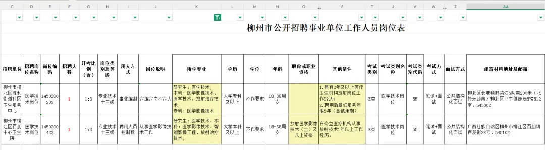 1.对报考县城、乡镇事业单位,以及工勤技能、中高级职称岗位的人员,学历年龄可适当放宽。具体条件以《柳州市公开招聘事业单位工作人员岗位表》(以下简称《岗位表》,附件1)为准。