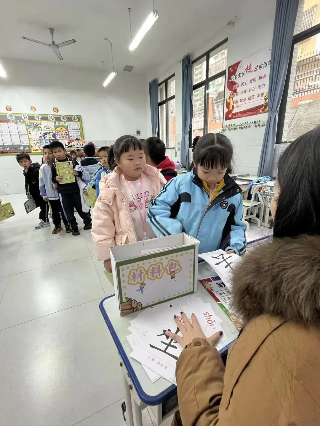 一年级语文学科期末嘉年华的第一关“词语小能手”欢乐开启啦!孩子们拿着闯关集星卡,从容地抽取生字卡,认真思索后响亮组出两个词语,每顺利组对一个,都能收获老师的赞许。