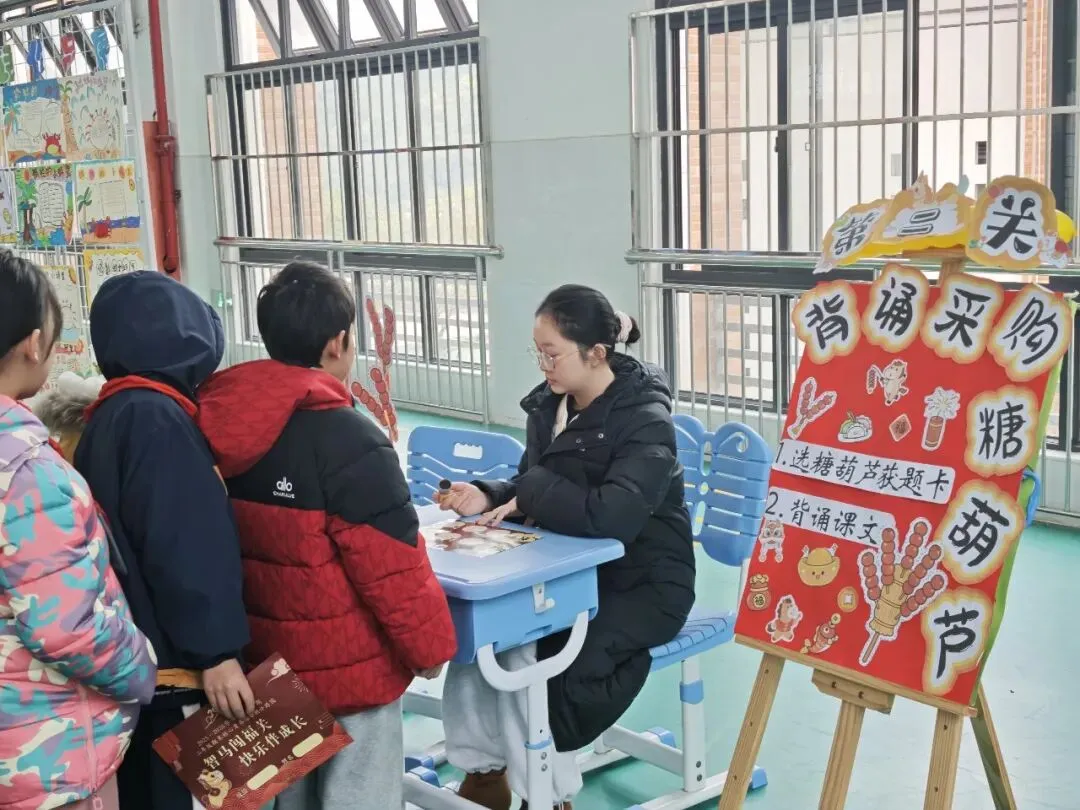 “诗词糖葫芦”串起了他们日积月累的扎实背诵,每一串“糖葫芦”都蕴含着知识的甜蜜。随机选取一串糖葫芦,开启了诗文背诵之旅。孩子们声情并茂地背诵,不仅流利准确,还富有感情,他们稚嫩的声音和呆萌的样子,仿佛将我们带入了课文中的情境。