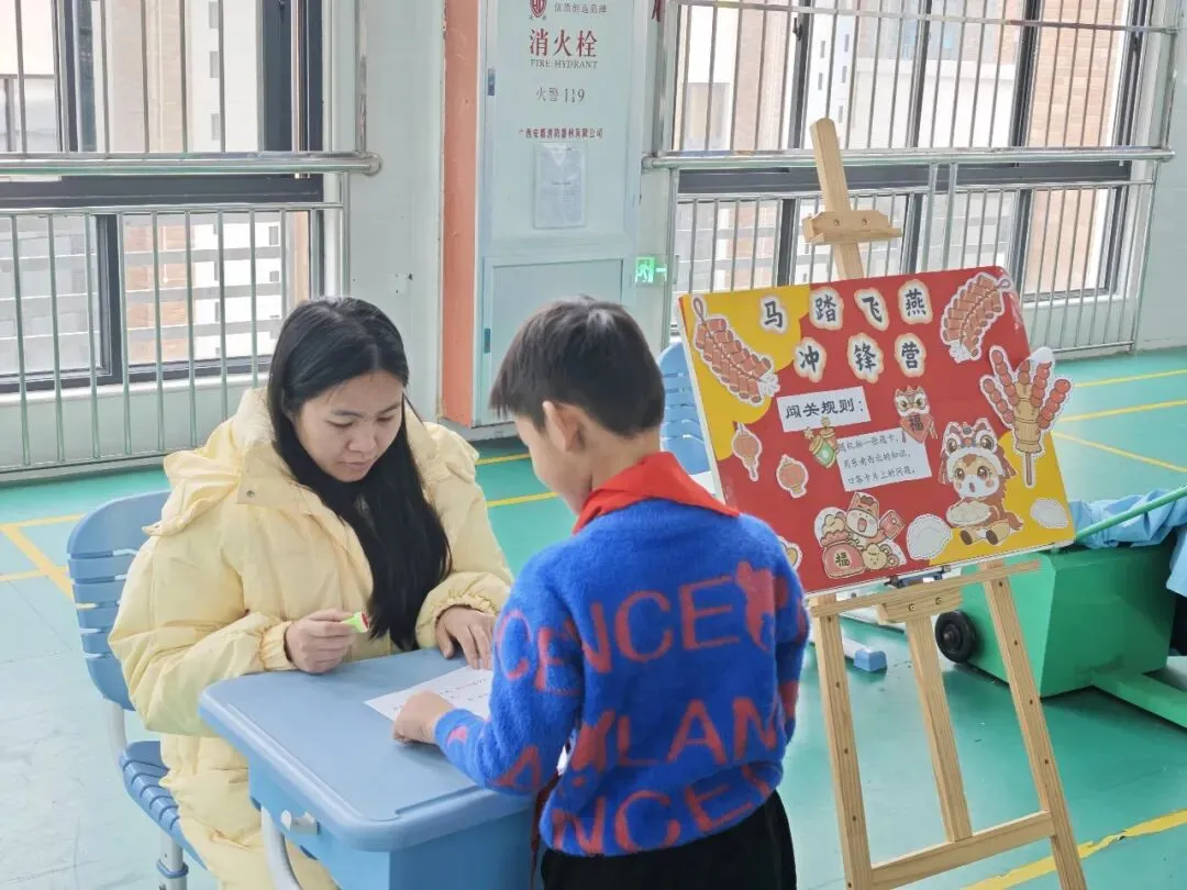 活动前,一、二年级组教师集思广益,将游戏与语、数完美融合,设计了一系列妙趣横生的关卡,让孩子们摇身一变成了勇敢自信的“闯关小将”,开启了别样的闯关行。
