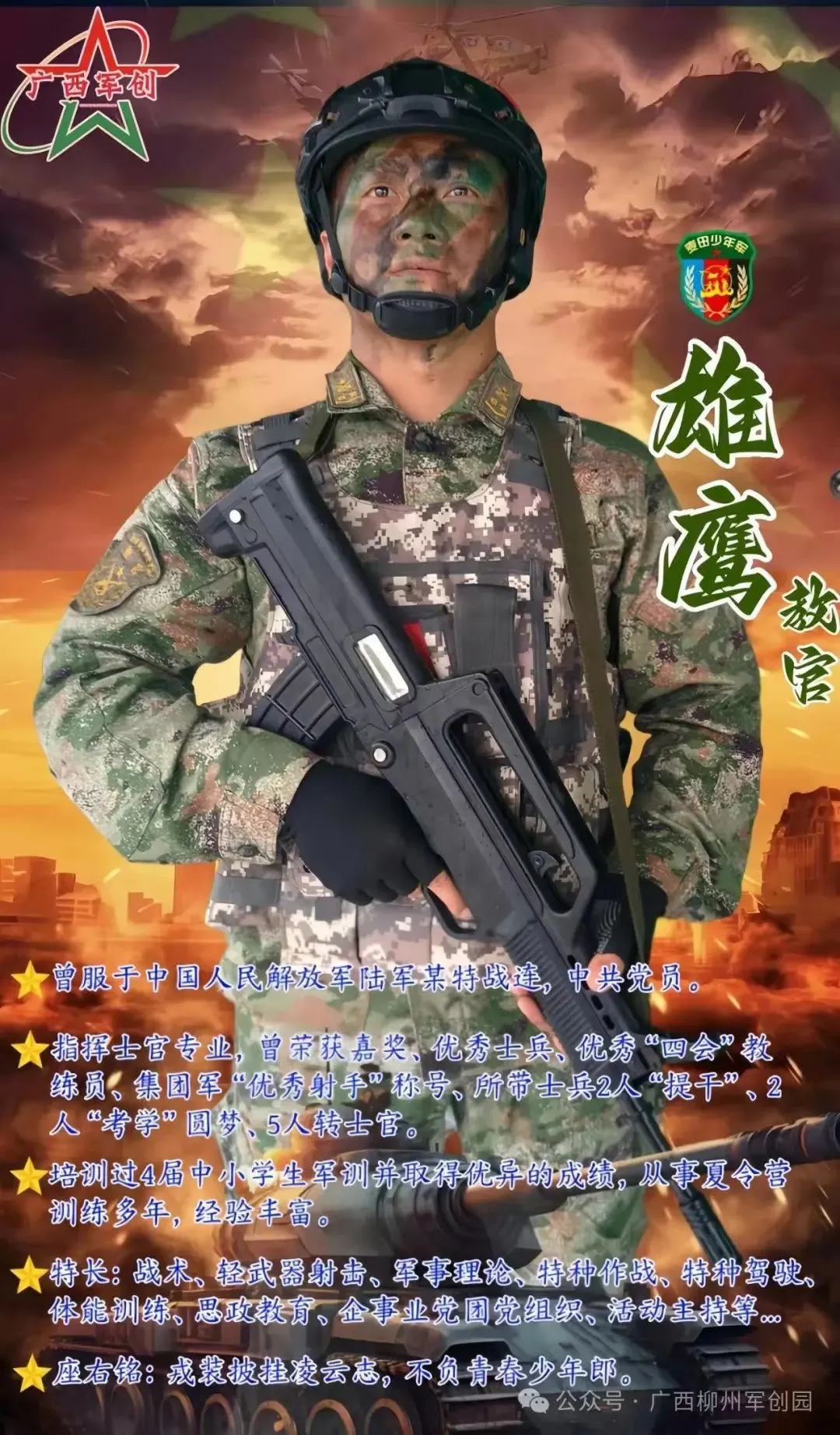 基地师资力量强大、优秀退役军人、专业素质拓展教官,军事教官具有丰富的教学经验和专业知识,教官团队有严谨的教学态度和高水平的教学技能的同时,非常注重学生的全方面发展,专业教官20余名,曾服役于各部队。教官队伍是我们军事训练中的中坚力量,教官的素质起到至关重要的作用。为了建设一支道德高尚、业务过硬、作风优良,适应夏令营课程特殊需要和青少年成长需要的教官队伍,我们的教官都需具备以下要求:1、具有良好的个人军事技能和善于管理能力,训练水平过硬,认真组织每位营员完成教育训练目标。