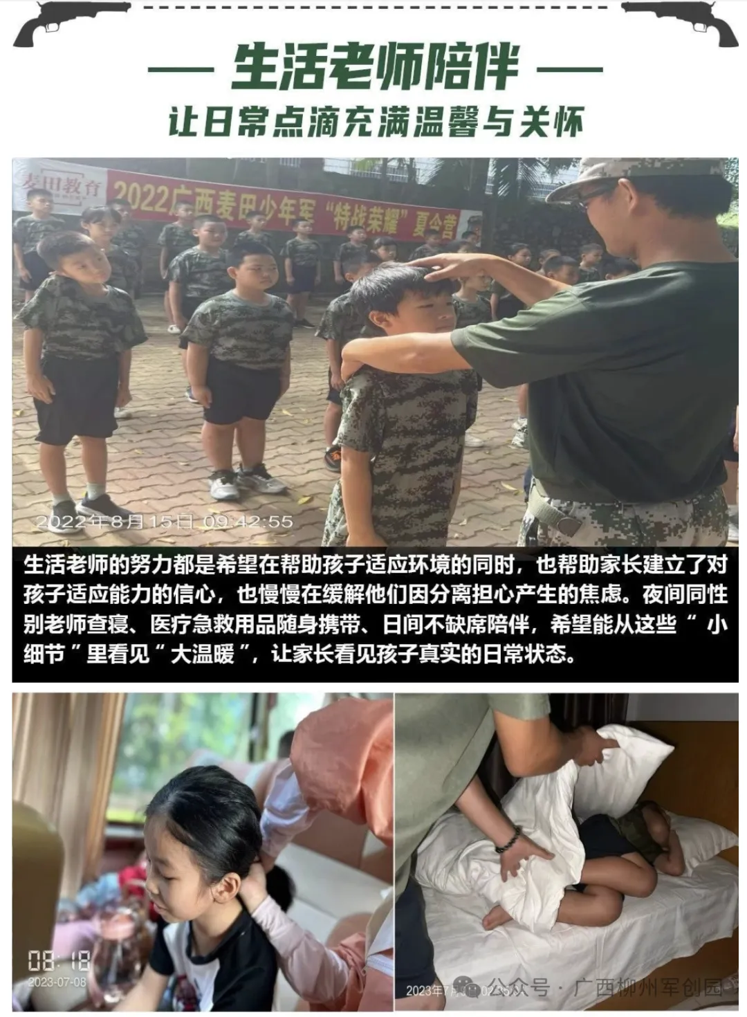 3、在我们营期内活,教官与营员同训练、同娱乐、同学习,视学员为学生和朋友,尊重人格尊严,因材施教,适当调整教育训练与管理方法,为学员的成长全神投入,绝不会打骂孩子。