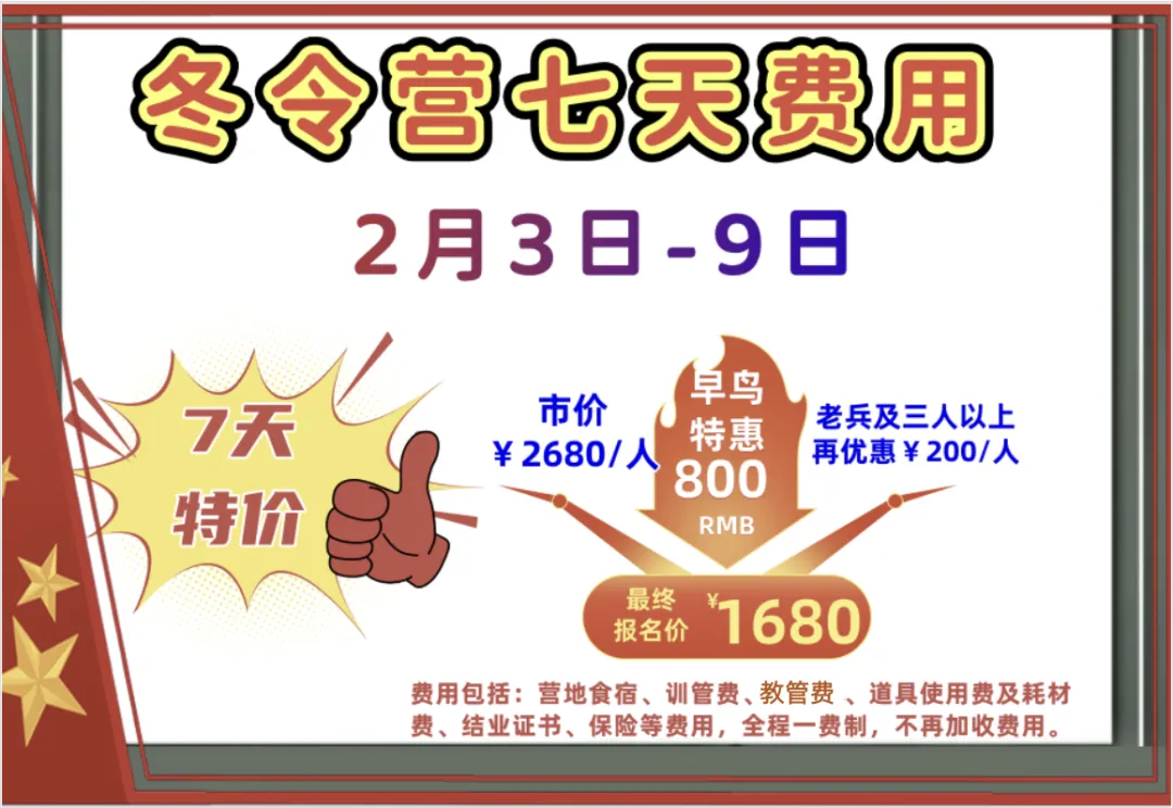 | 备注:*因天气原因,训练流程、以及训练场地更改不另行通知。(活动期间会根据实际情况进行一次或数次不定时紧急集合,夜行军等特殊情况安排) |
