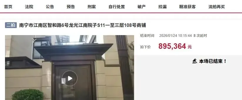 不过,南宁市这栋江南院子的别墅拍卖流拍,其实主要还是价格问题,很多人都是想更低价格再买的。这不近日,这栋别墅就迎来了降价拍卖了。这次拍卖,起拍价降到了87.9364万元,比第一次拍卖少了约22万元,降价幅度不小,这次立马就有3个人报名竞拍了。最终经过了9次加价竞拍后,别墅以89.5364万元成交,成交价比第一次拍卖的价格低了约20万元。所以,别墅不是没有人要,而是价格没有到买房者心里价位罢了。