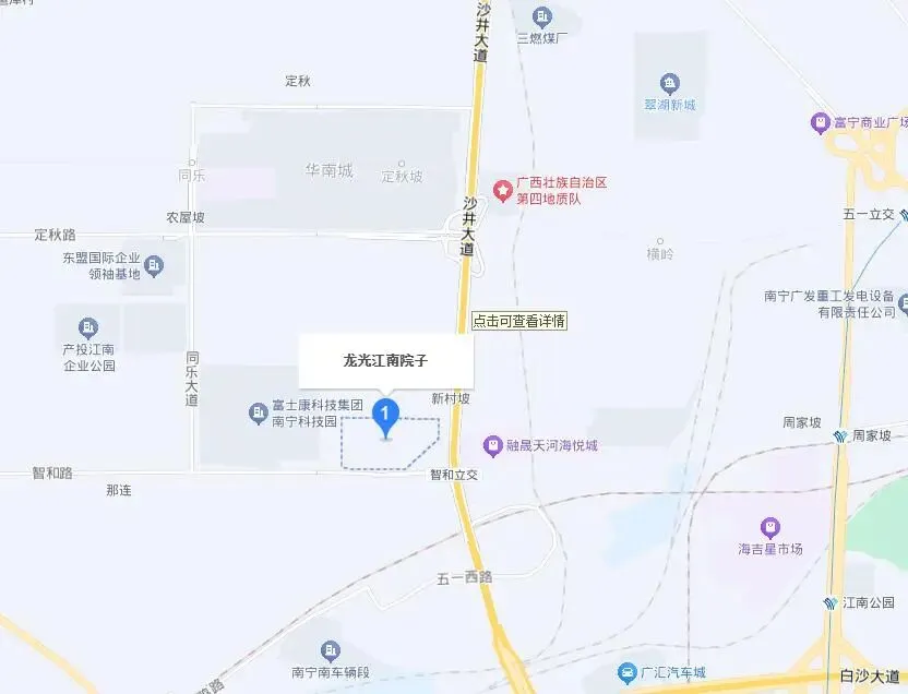 从位置来看,这栋别墅所在的江南院子,位于南宁市江南区的沙井片区,就在华南城的南边,富士康科技集团南宁科技园的东侧,整体区位不是非常好,但是也不差的,周边居住小区也很多,交通也算非常便捷。
