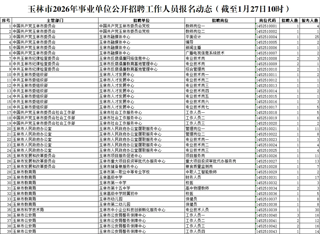 今日玉林广西事业单位官方报名人数发布!点击快速检索事业单位岗位报考人数
