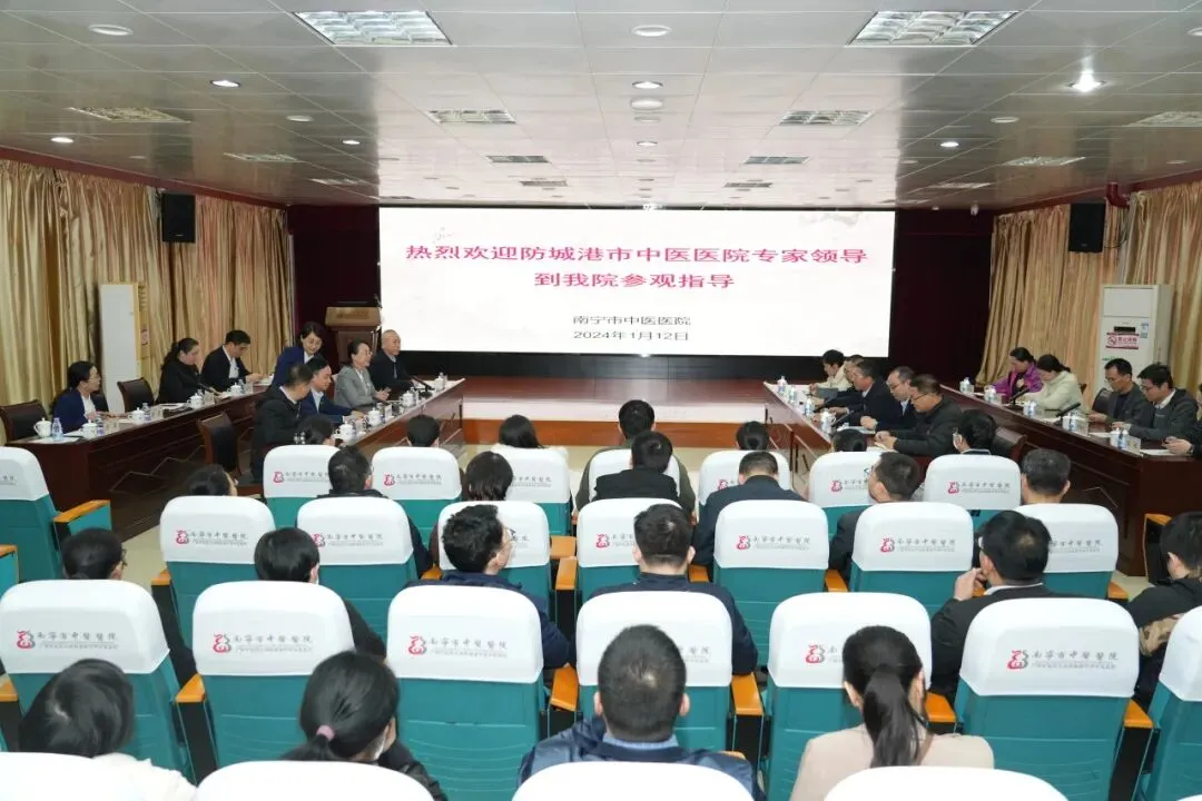 1月12日,防城港市中医医院党委书记徐奎一行41人到我院参观交流,医院党委书记倪钰荣等院领导班子成员和全体党支部书记、相关科室负责同志进行了热情接待。
