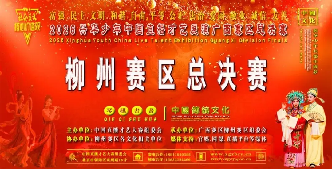 2026中国云赛展演活动以习近平新时代中国特色社会主义思想和深刻把握习近平文化思想为指导精神。全面贯彻落实中共中央、国务院印发的《新时代公民道德建设实施纲要》和《关于全面加强和改进新时代学校美育工作的意见》的通知精神,立足新时代人民群众思想特点和发展规律,在全社会大力培育和践行社会主义核心价值观,为促进柳州全市人民道德素质和文明素养不断提升。加强柳州优秀艺术人才队伍的建设,丰富柳州公共服务多元化,增强全市人民的文化自信获得感和幸福感,选拔和储备优秀文化艺术人才,不断推动全市公共文化服务。有中国直播才艺大赛组委会、华南赛区组委会、广西赛区组委会、柳州赛区组委会共同开展“2026兴华少年中国直播才艺展演云端双线总决赛”广西柳州赛区系列文化展演活动。