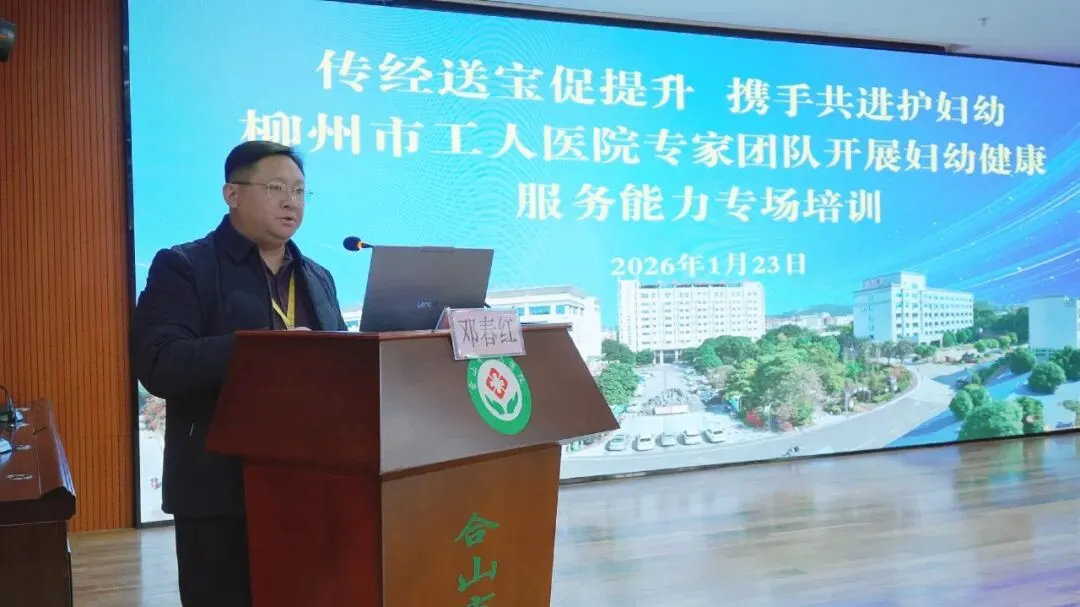 传经送宝精准赋能,妇幼健康服务提升!为深化医联体协作,提升合山市域妇幼健康服务精准度与实操能力,1月23日下午,柳州市工人医院6人专家团队莅临合山市人民医院,在门诊楼6楼学术报告厅开展妇幼健康能力提升专场培训。我院副院长邓春红、陈望洲,医共体总院及各分院妇产科、超声科、检验科等相关科室医务人员人员参加了此次培训。