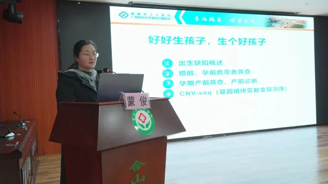 柳州市工人医院产科优生遗传室主任,产前诊断办公室副主任蒙俊主任医师开展《避免出生缺陷,我们能做什么》专题授课,聚焦出生缺陷防控核心,系统讲解三级预防体系架构,拆解了婚前孕前携带者筛查、孕期NT检查、大排畸等关键节点的实操标准,明确高风险病例的转诊流程与咨询要点,为我院规范优生遗传服务提供了清晰指引。