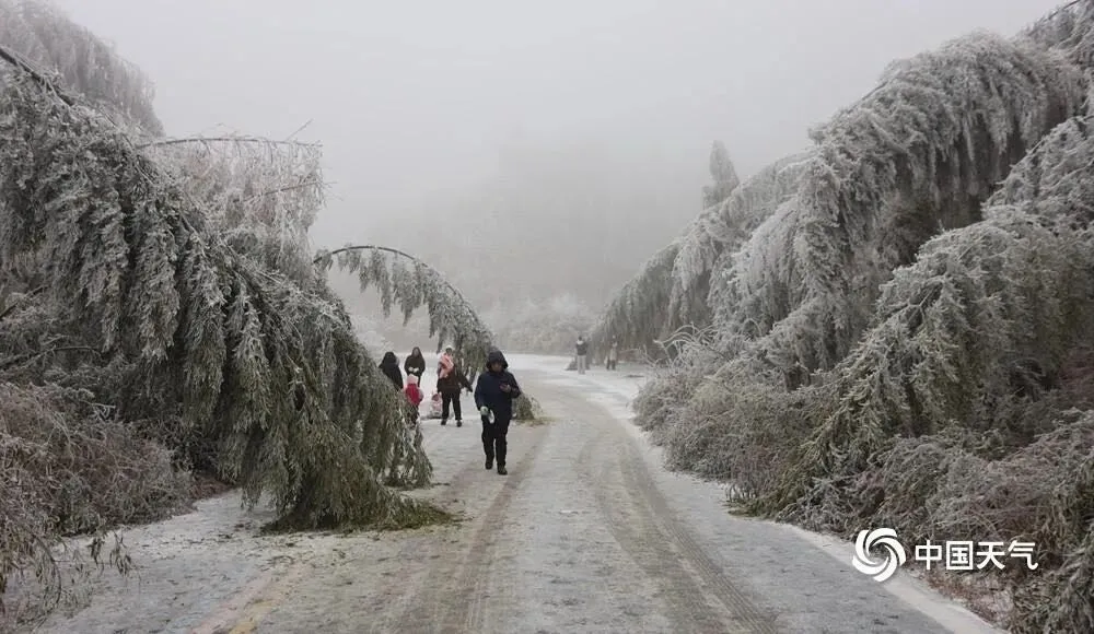 这是南方独有的雪,不似塞北的鹅毛漫卷,只是冻雨凝霜,雾凇为裳,把整座古亭山揉成了温润的玉。行至半山,风渐烈,却见游人三两,或扶栏赏景,或俯身拍冰,连孩童的笑闹声,都被冰雪滤得清透。有人拎着保温杯,呵着白气站在观景台,望柳江如碧带,绕着银装的山峦蜿蜒,江面上薄雾袅袅,与山间的云气相融,分不清是江雾入山,还是山云渡江。