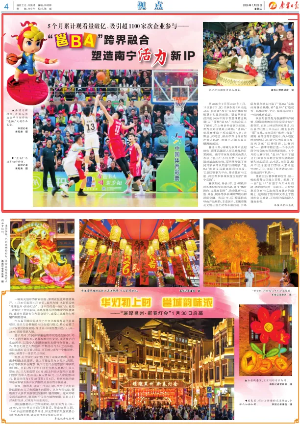 赛事期间,各县(市、区)积极开展各类配套文旅商活动,通过“体育搭台、文旅商助阵”,推动体育与文旅、商业、娱乐等多领域跨界联动和深度交融。各县(市、区)接连推出特色产品展销、非遗展示、主题市集及文娱公益互动等丰富活动,并串联各景点精心打造了“邕BA”文旅体商融合线路,将“邕BA”打造成为一场集竞技、文化、旅游与商贸于一体的体育盛会。