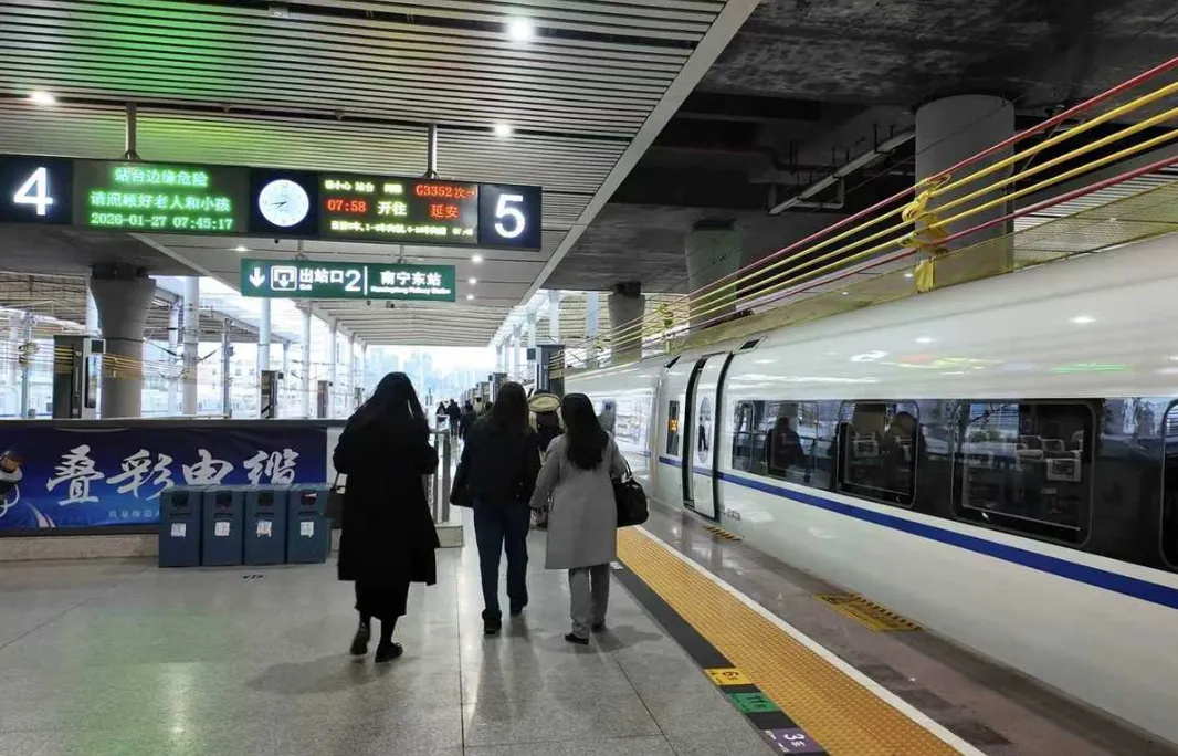 1月27日7时58分,首趟南宁东至延安的动车组列车G3352次驶出站台,标志着“绿城”南宁与“革命圣地”延安实现高铁直通,填补了两地无直达高铁的空白。据悉,这是国铁南宁局今年一季度调图的亮点之一,区内首次拥有直达延安的高铁,南宁至延安两地最快12小时19分可达,对促进两省区红色旅游资源共享,推动陕北革命老区振兴发展与广西北部湾经济区建设深度融合具有重要意义。