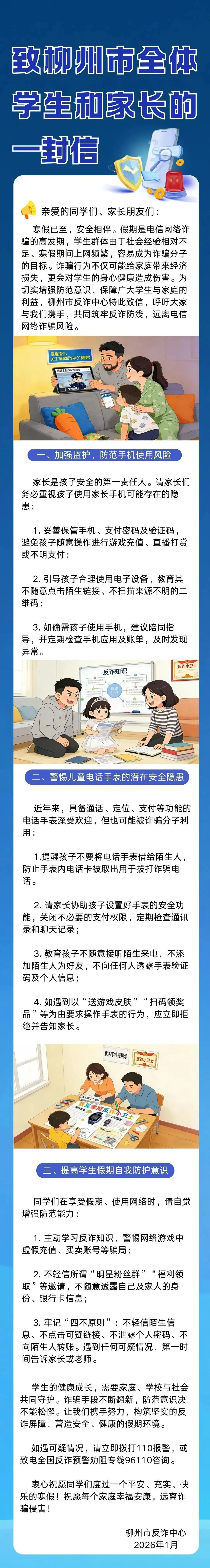 《一封信》中提到,请家长切勿随意或过度为孩子安排校外培训。鼓励在保障安全的前提下,合理安排孩子参与家务劳动、经典阅读、体育锻炼与社会实践等活动,度过一个安全、充实、祥和而有意义的假期。