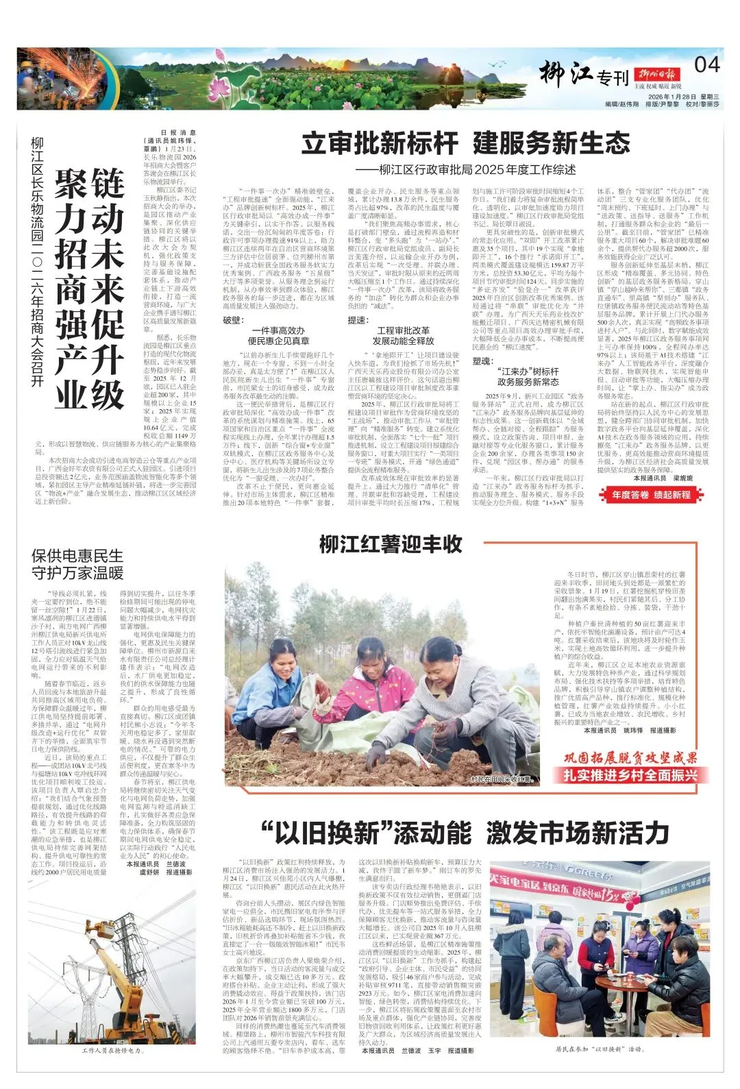 这些鲜活场景,是柳江区精准施策推动消费回暖提质的生动缩影。2025年,柳江区以“以旧换新”工作为抓手,构建起“政府引导、企业主体、市民受益”的协同发展格局,吸引46家商户参与活动,完成补贴审核9711笔,直接带动销售额突破2923万元。如今,柳江区家电消费加速向智能、绿色转型,消费结构持续优化。下一步,柳江区将拓展政策覆盖面至农村市场及重点群体,强化产业链协同,完善废旧物资回收利用体系,让政策红利更好惠及广大群众,为区域经济高质量发展注入持久动力。