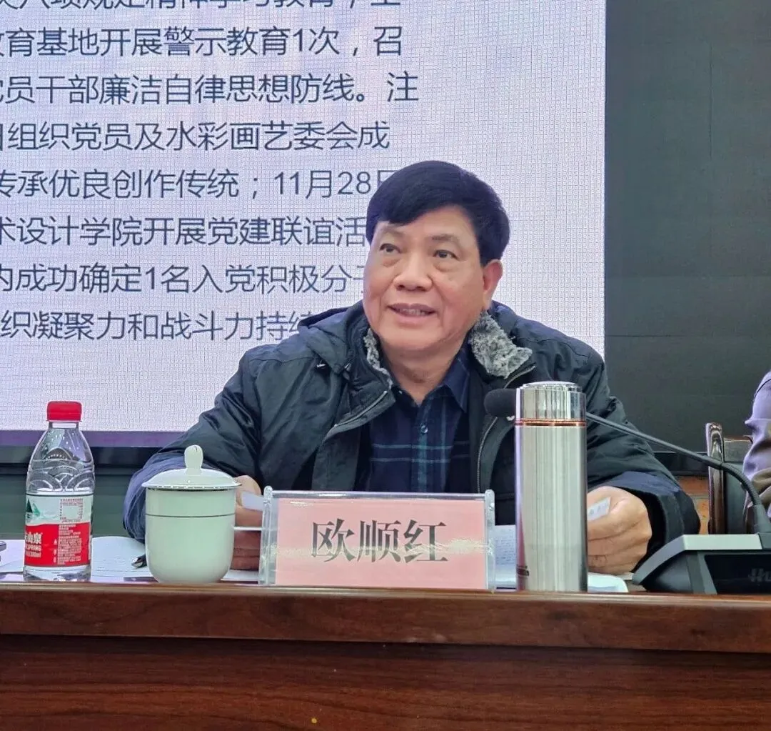 会议第一项议程,由市美协主席欧顺红作市美协2025年工作总结及2026年工作计划报告。他讲到,过去的一年,市美术家协会在市文联的正确领导下,在广西美术家协会的关心指导下,主席团与理事会始终坚持以习近平新时代中国特色社会主义思想为指引,严格落实党的各项文艺方针政策,以党建带群建,推动党建与业务深度融合。以“多出精品、多出成果、多出人才”为核心目标,在党建引领、精品创作、活动开展、人才培育等方面取得显著成效,年内,有40人次入国展,其中中国画9人次、其他画种12人次,少儿19人次;2025广西农民画大展上,共有69幅作品获奖;由美协副主席陈玉秋领衔创作的农民画长卷《新青年·智未来》被北京大学收藏,并被央视《焦点访谈》“文明乡风”栏目采访,广受关注。