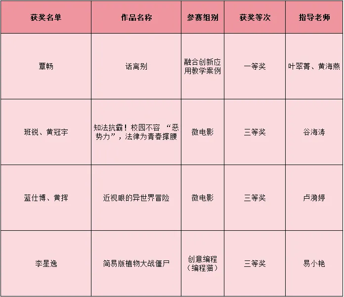 优异成绩的背后,是师生勤于钻研、勇于探索的智慧结晶,也是指导教师悉心指导、倾心付出的成果体现。在此,我们向所有获奖师生表示热烈的祝贺!也向全程给予指导与支持的老师们致以诚挚的感谢!