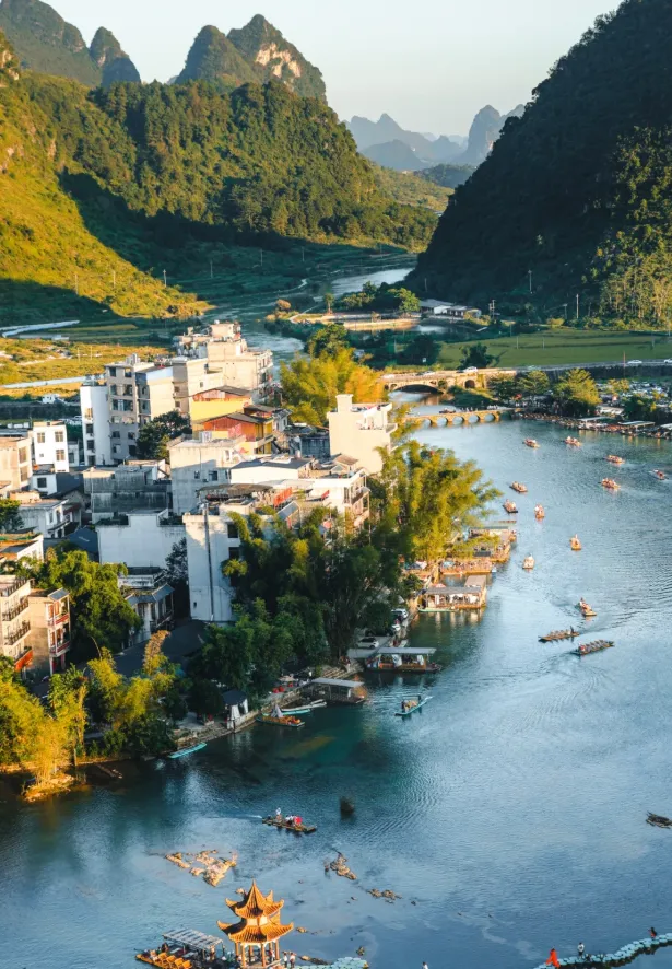 街巷沿河展开,屋檐低低地靠着山脚,天刚亮就能看到人家门口晒辣椒、挂腊肉。风一来,香气四散。