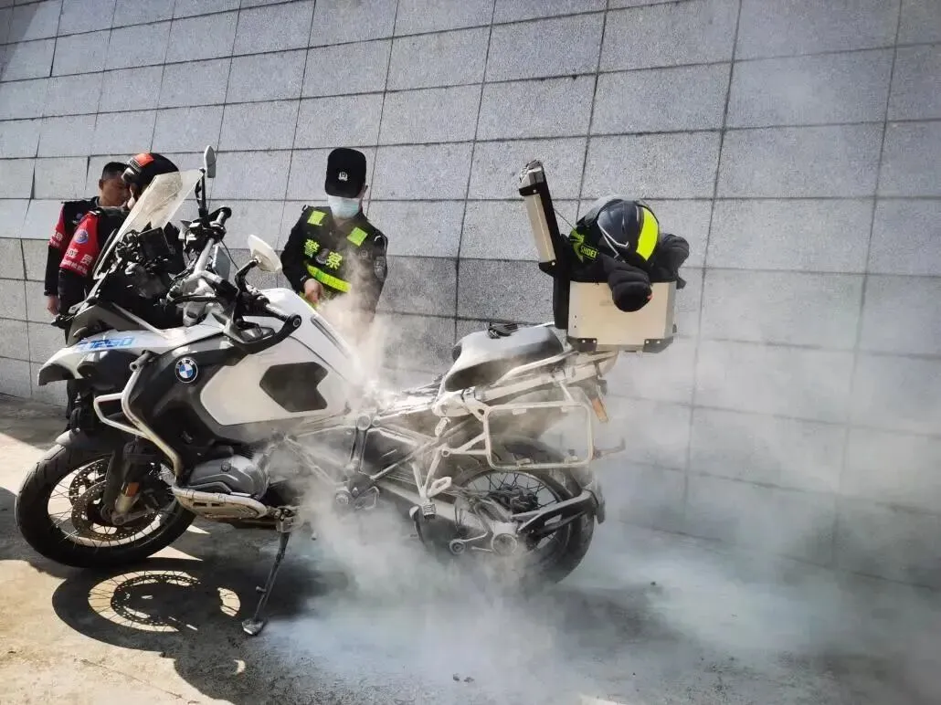 1月21日,楠木山边境检查站在执勤时成功处置一起摩托车自燃突发事件。