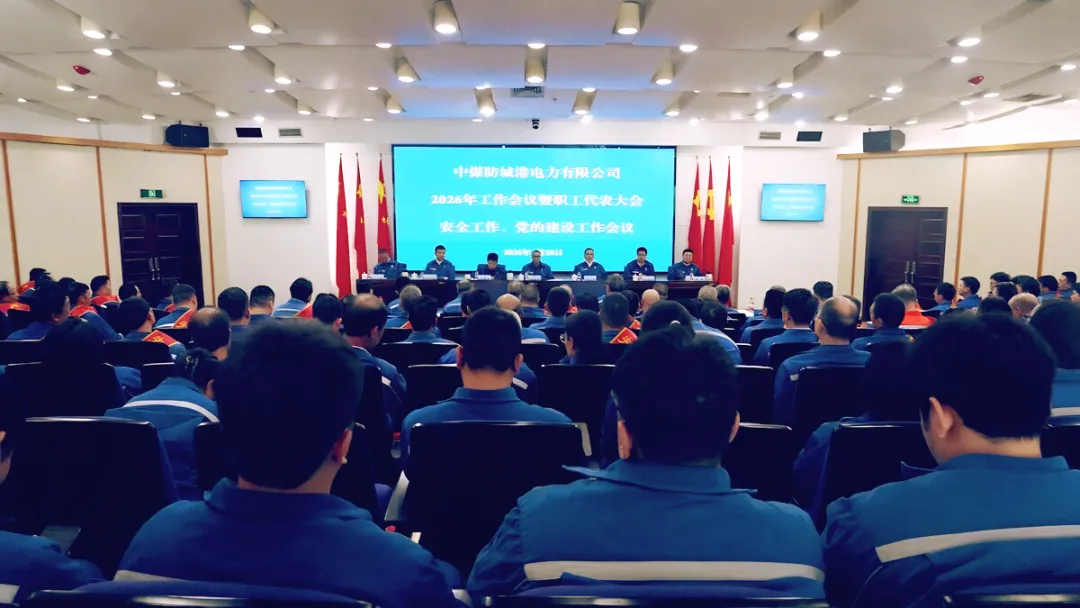 1月28日,防城港电力召开2026年工作会议暨职工代表大会、党的建设工作会、安全工作会议。会议传达贯彻集团公司、电力公司2026年工作会议暨职工代表大会、党的建设工作会、安全工作会议精神,全面总结公司2025年工作,分析面临的形势任务,安排部署2026年的重点工作任务。公司党委书记、董事长杜兴源作党建工作报告并讲话,党委副书记、总经理张卫军作工作报告,副总经理、工会主席崔新宇主持会议、作工会工作报告并宣读相关表彰决定,党委委员、副总经理王峰作安全工作报告,党委领导班子其他成员出席会议。