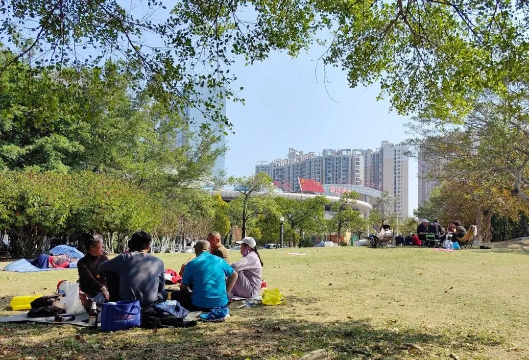 大爷大妈们围坐成圈