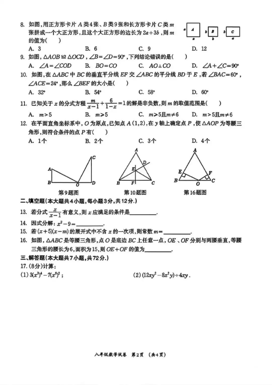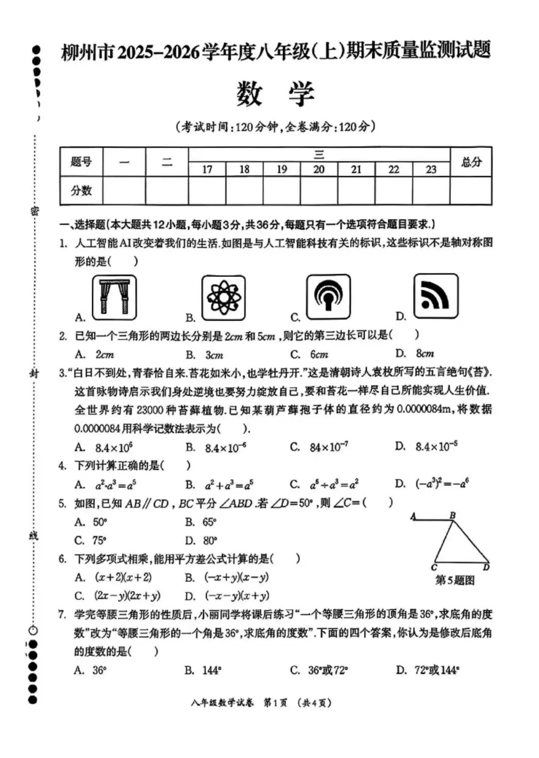 柳州市2025-2026学年度八年级(上)期末质量监测【数学】试题