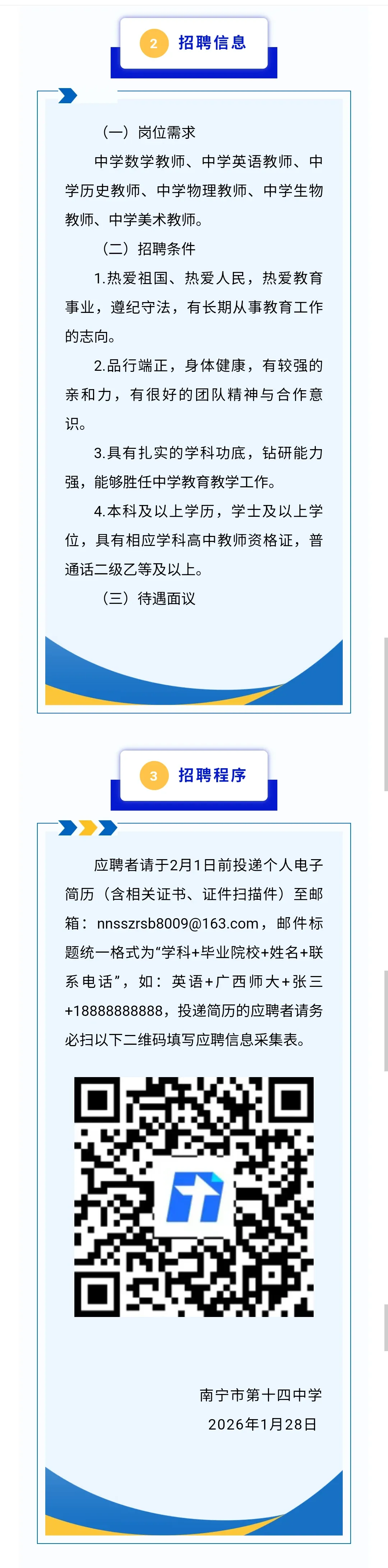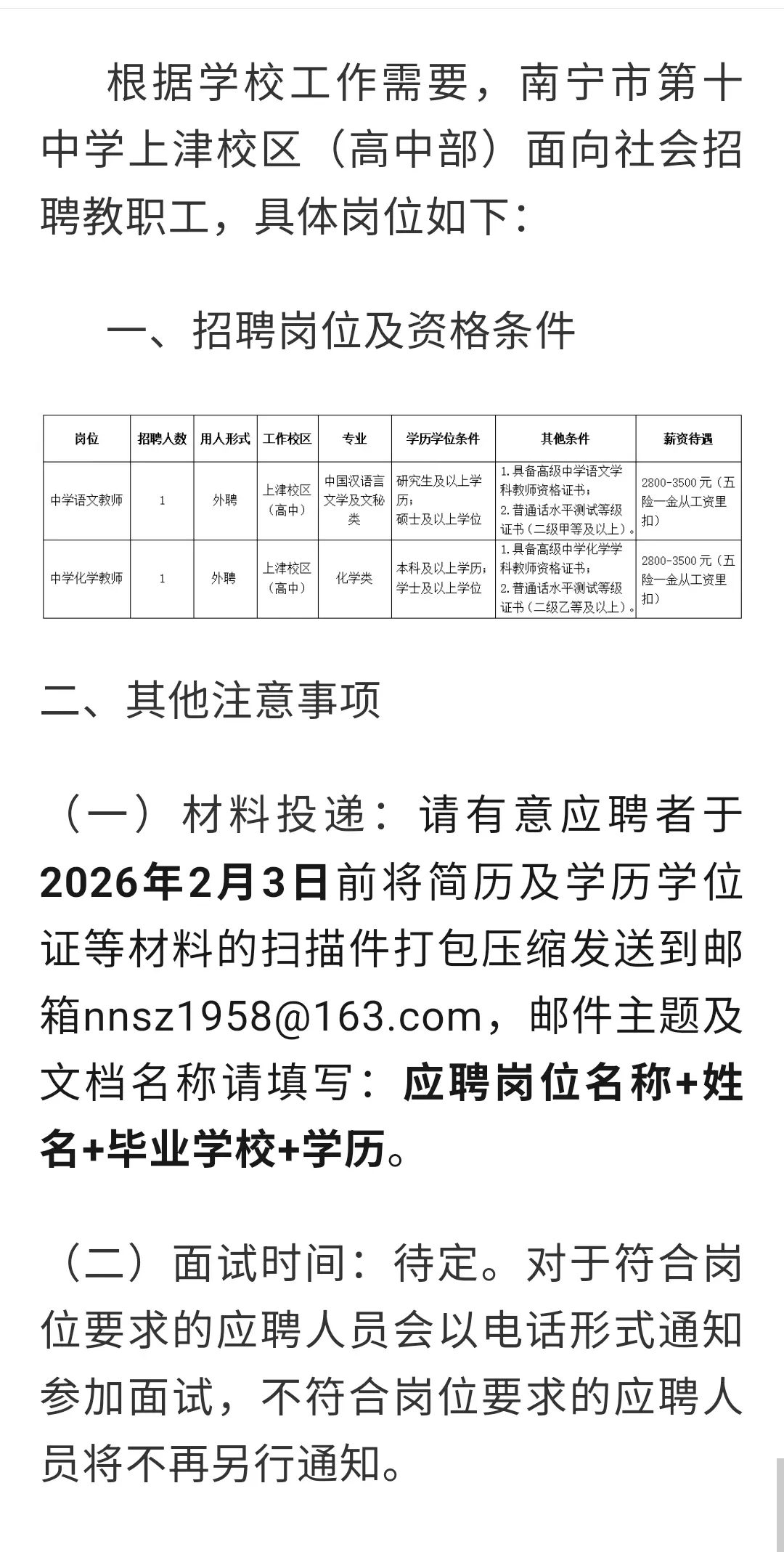南宁教师招聘:南宁市第十中学上津校区(高中部)招聘