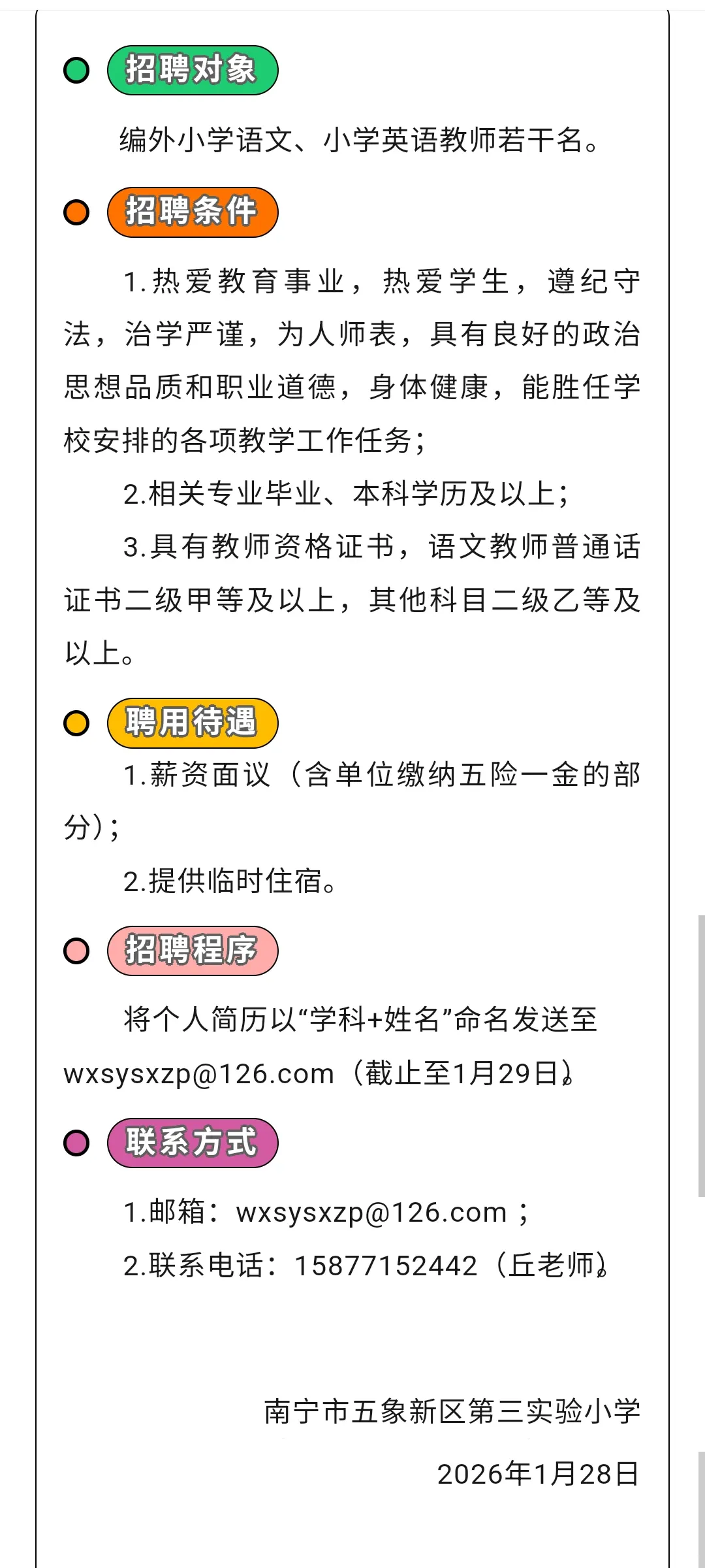 南宁教师招聘:南宁市五象新区第三实验小学招聘