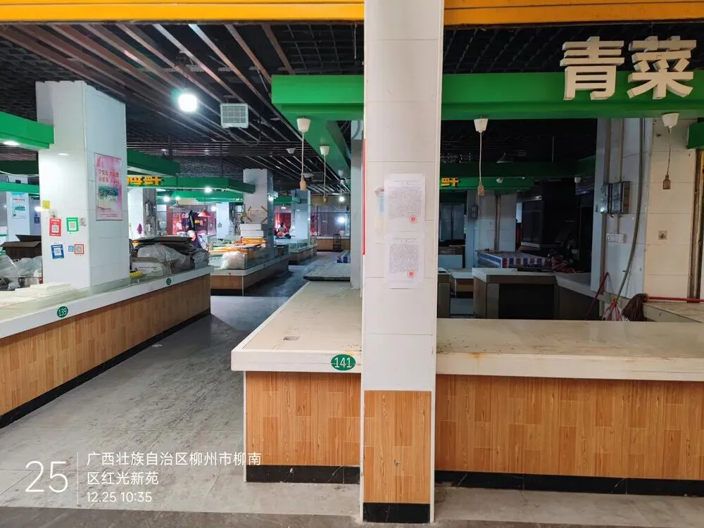 近日柳州的拍卖市场迎来了一个菜市的拍卖,具体位置是柳州市飞鹅路菜园屯2号红光新苑4、5、6栋一层的不动产。这个不动产的面积不小,其中房屋建筑面积为1941.83平方米,土地使用权面积为516.40平方米。现如今这个标的物被用作综合菜市使用,分割成数个摊位和商铺,请意向买受人实地看样,以现场为准。作为菜市这个面积不算大,而且因为位置还是有点偏,来这里买菜的人并不多,很多博主来这里打过卡,发现人流量不是很大,算得上是个小菜市。目前这个菜市是由柳州市通全商贸有限公司负责运营管理,主要业务包括门面、仓库租赁等。现如今已经被法院查封并启动司法拍卖以清偿这个公司欠下的债务,如果菜市景气该公司是有能力还债的,但目前因为菜市本来就小,人流量不够大,租摊位的也越来越少,导致摊位难租,且难收缴租金,导致该公司的资金链断裂,无力偿还到期债务。为了挽救菜市人气不旺的颓势,该菜市也做过一番努力,在2021年改造升级过,整个菜市焕然一新,并且打造成了柳州唯一集菜市和中草药市场为一体的农贸市场。遗憾的是,这番努力依旧难挽其走下坡路的趋势,改造后的菜市内部固定摊位租的人并不多,而且周边自建房小巷临时摆摊分走了很多流量,哪怕是节假日菜市人流也不算密集。被拍卖后,该菜市的评估价是1041.7万,第一次拍卖的起拍价是729.2万,直降近300万,吸引来很多人的围观,但是没有人出价而流拍。第二次拍卖的起拍价只要583.4万,比评估价低了近460万,相当于打了5.6折,属于是腰斩了。目前依旧是有很多人围观,但暂时还没有人报名竞拍,因为距离二拍正式开始还有十多天,还看不出来到底有没有会报名。另外,虽然目前该菜市没有清空,不过被执行人已经签署了清空承诺书,如果对方不按照约定清空,到时候可能会被强制腾空。如果有想拍下的,还需要了解清楚是否有拖欠物业费水电费等费用,以及能否过户也都是需要提前了解。
