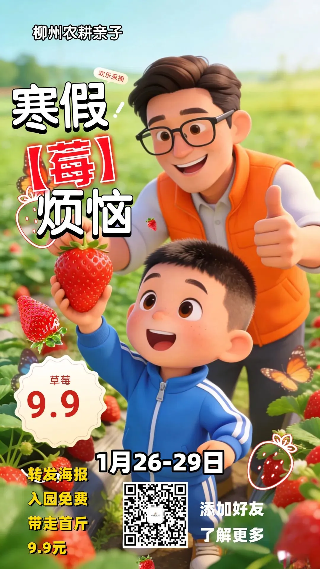 转发帖子入园免费,享草莓首斤9.9元/斤(第二斤起25元/斤)