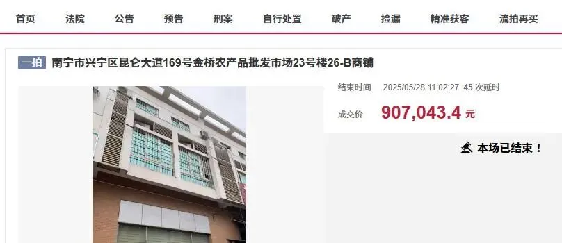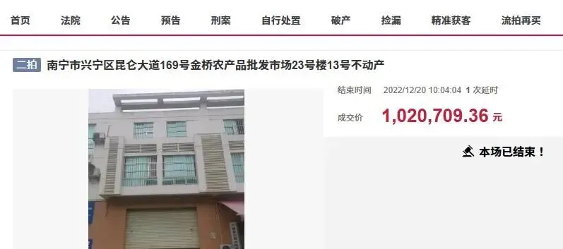 位于南宁市兴宁区昆仑大道169号金桥农产品批发市场是南宁市一个非常大的农批市场,人流量、车流量非常大,所以这里的商业房产,商业价值是非常高的。近日,在南宁市司法拍卖市场上,金桥农产品批发市场就出现了一栋商业楼被拍卖,结果也是相当抢手,最终高溢价率成交。