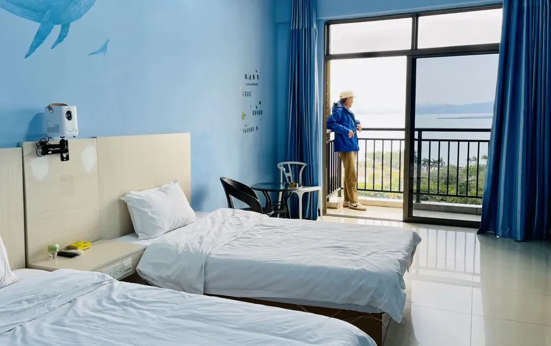 时间倒回元月23日,我们告别了武鸣,一路向南来到了防城港。出发前,我特意在平台上挑选了许久,敲定了一间海景房,心心念念着能推窗见海。当拖着行李箱打开房门的那一刻,我和牛牛对视一眼,都忍不住笑了,一眼就喜欢上了这个地方。房间正对着大海,蓝天、白云、海浪构成了一幅天然的画卷,海风轻轻拂过,连空气里都裹着独属于海边的清新味道。