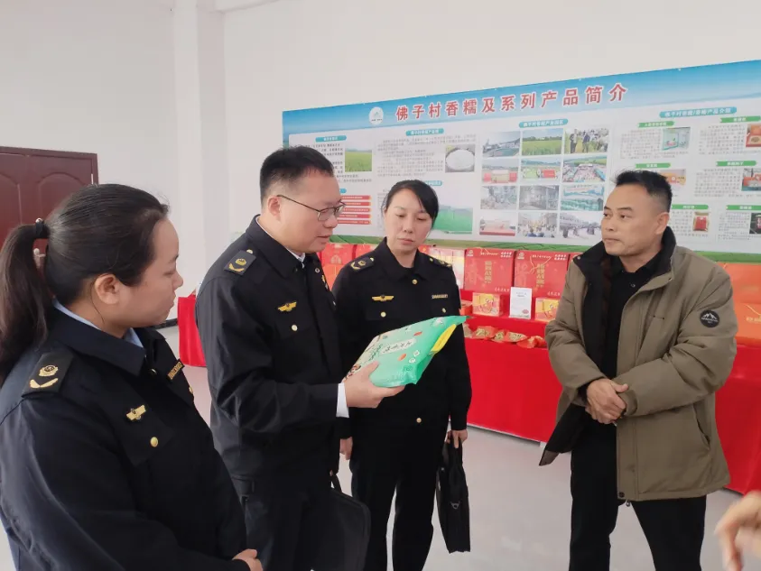在企业检查环节,执法人员聚焦标志使用、产地溯源、质量管控等关键节点,对辖区地理标志用标企业开展靶向检查。在上思县思奉香糯粮油销售有限责任公司,执法人员细致核查“上思香糯”专用标志使用台账,对照标准检查产品产地真实性与质量达标情况,现场指出使用环节潜在风险,督促企业依法依规、规范真实用标。