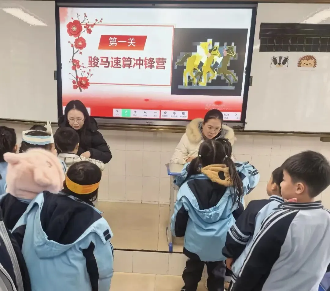一年级“骏马速算冲锋营”挑战速度与准确率,二年级“奔马解题探险岛”融合逻辑与探索。