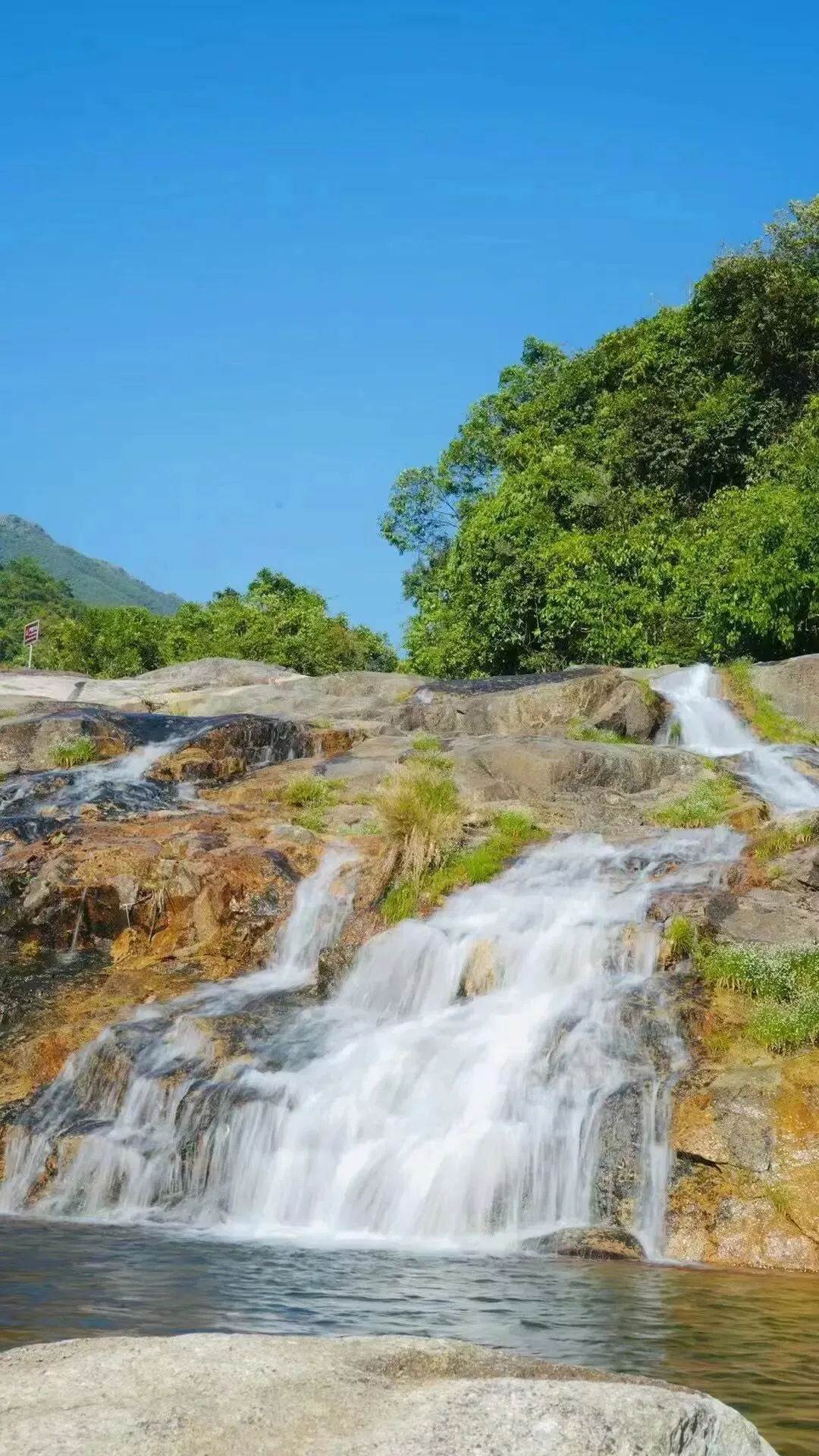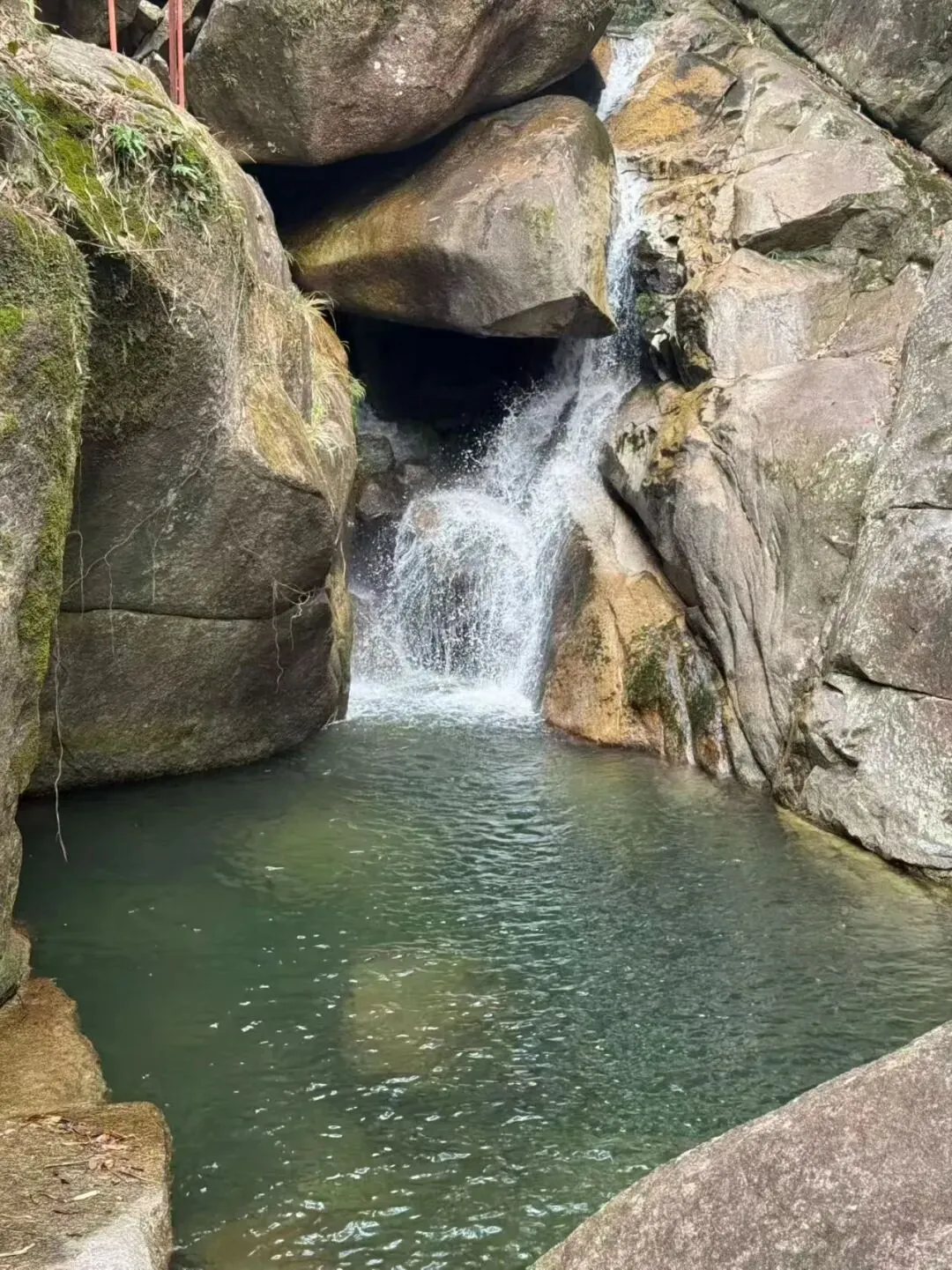 谷中清亮的溪水随着河床的变化而成潭成湾成瀑。